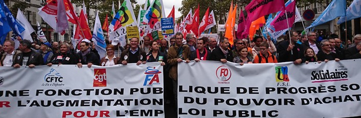 Les syndicats représentants 5,7 millions d’agents ont affiché une  solidarité rare: les neuf (CFTC, CGT, CFDT, FO, Unsa, FSU, Solidaires, CFE-CGC et FA) ont lancé un appel commun contre « la mise à mal des missions publiques », « la dégradation des conditions de travail » et pour le pouvoir d’achat des agents.